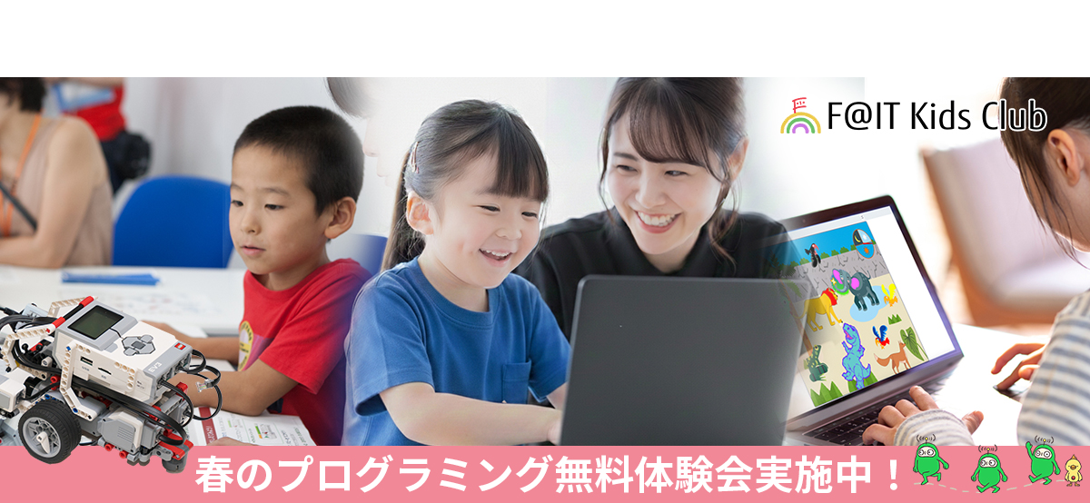 F@IT Kids Club(ファイトキッズクラブ)は、社会人向けIT研修の実績を多数持つ、富士通ラーニングメディアが運営するプログラミングスクールです。