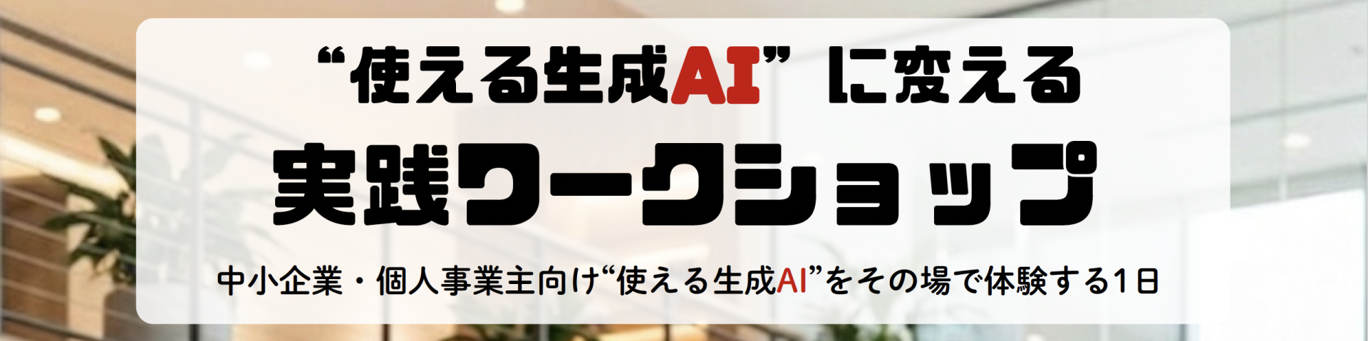 本ワークショップは、「生成AIを触ってみたものの、業務にどう活かせばよいか分からない」「ChatGPTなどのAIツールを使いこなせていない」といったお悩みをお持ちの方に向け、“使える生成AI”として実務に落とし込むための1日完結型プログラムです。